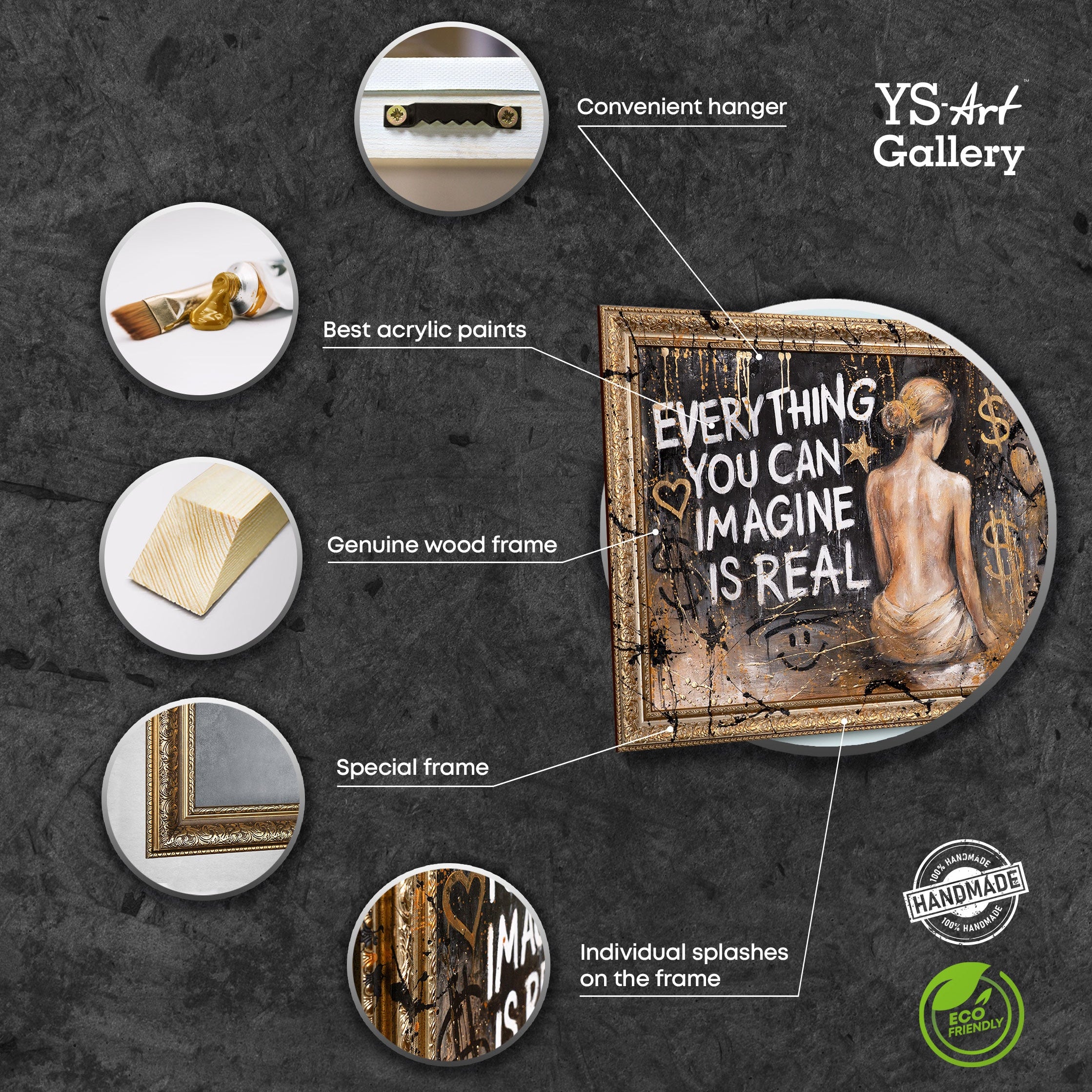 • Hand-Painted Canvas Art – Wall Painting with Frame „Everything is Possible“