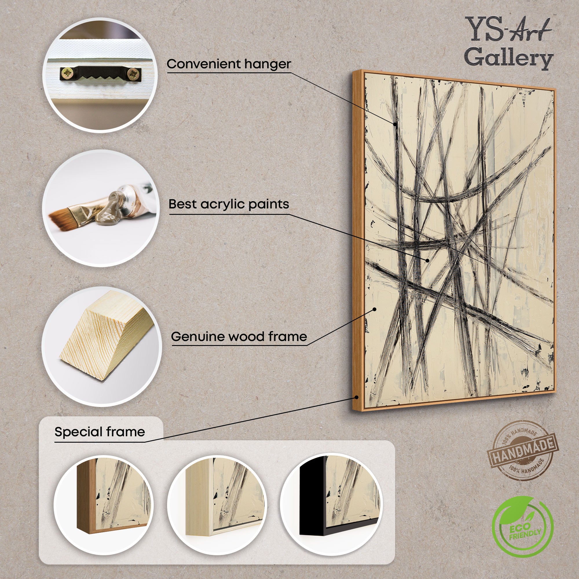 • Hand-painted canvas picture "Parallels and Intersections" – Abstract modern wall decoration