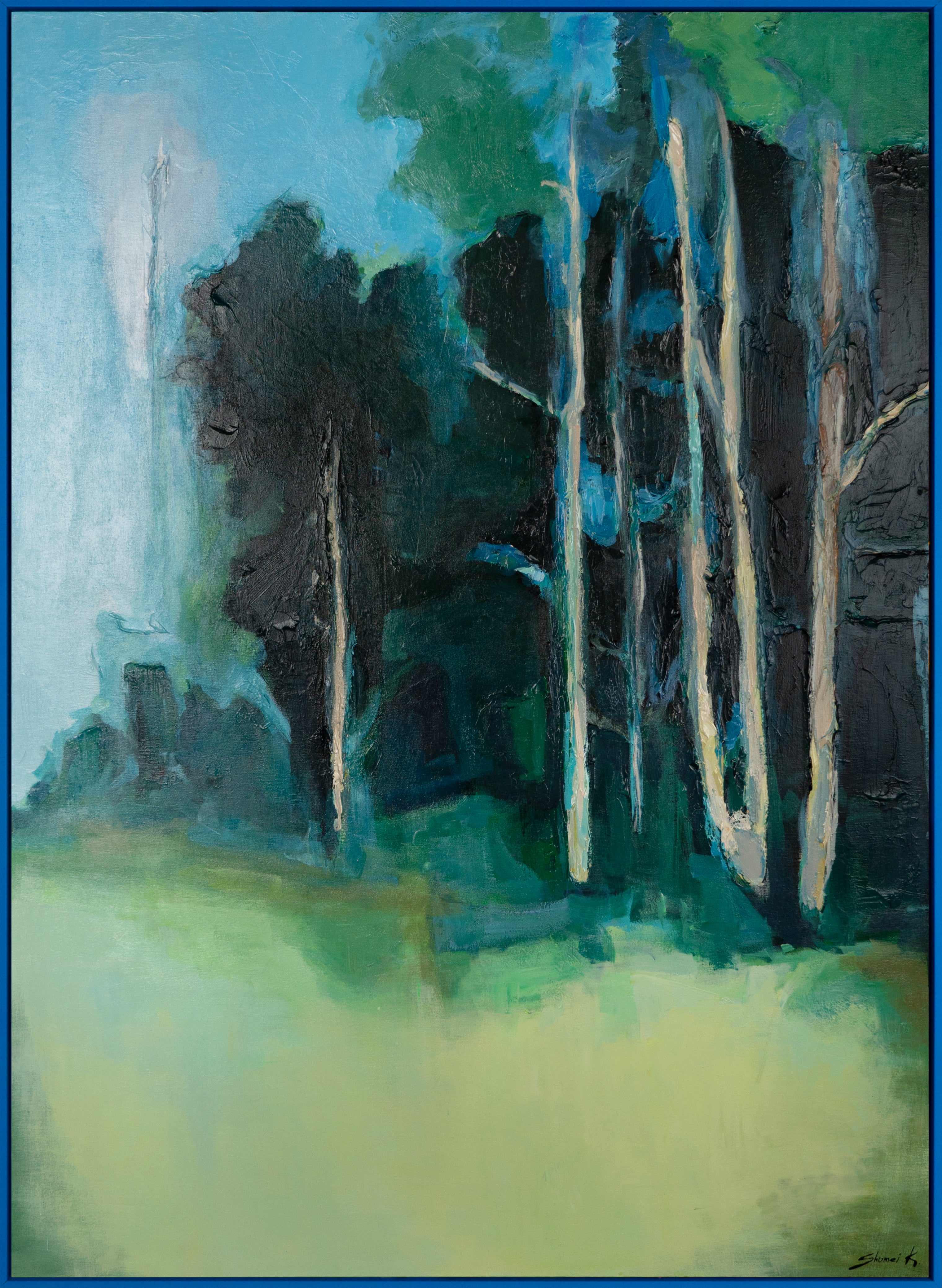 "Forest Shadows" is a hand-painted acrylic canvas that captures the tranquil atmosphere of a deep woodland. Featuring stylized trees in layered green tones, this textured painting creates a sense of calm and mystery. A refined piece of modern wall art perfect for peaceful and elegant interiors.