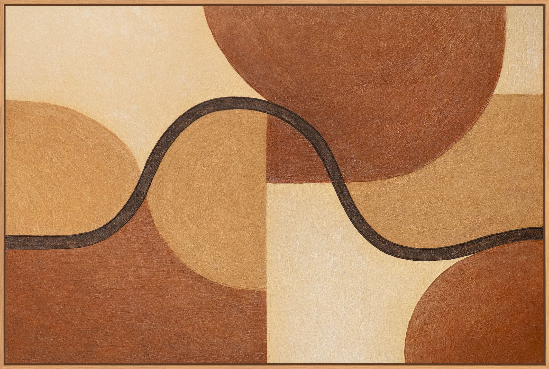 "Intertwining of Forms" is an abstract acrylic painting with clear geometric shapes and gently flowing lines. Warm beige, ochre, and brown tones blend harmoniously, creating a balanced, tranquil composition with modern clarity.
