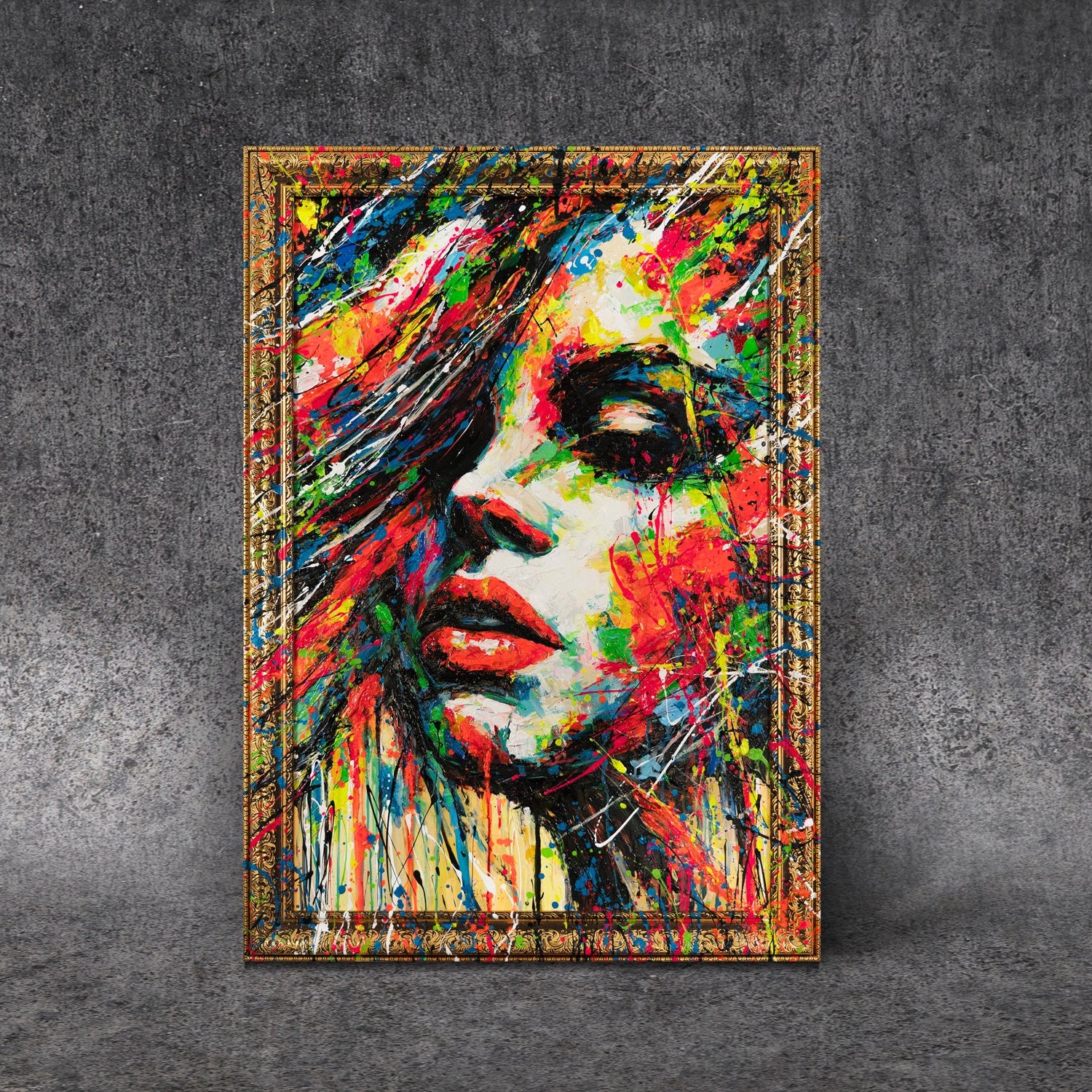 • Moderne Acrylkunst Porträt Frau Gesicht Farbe Textur