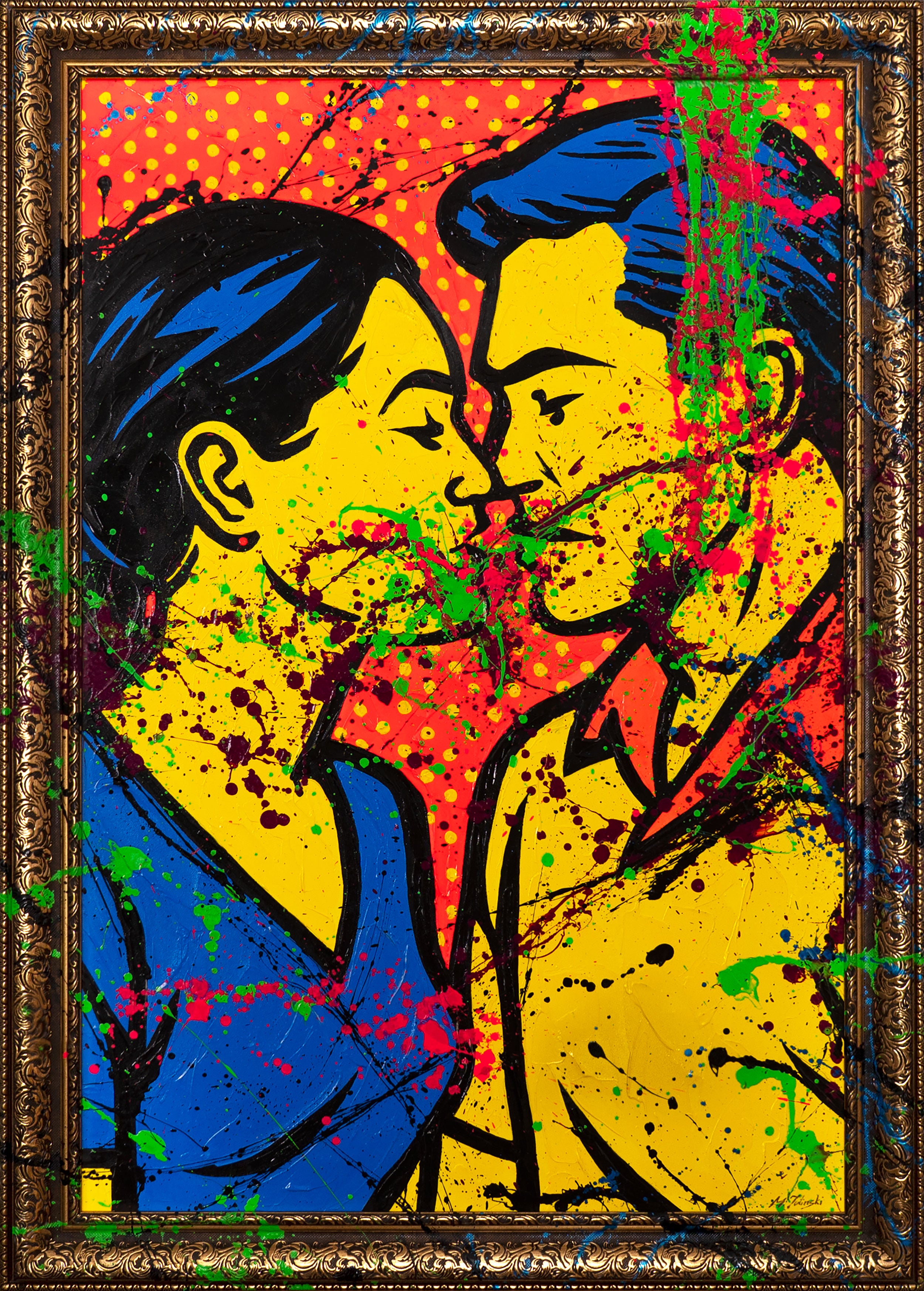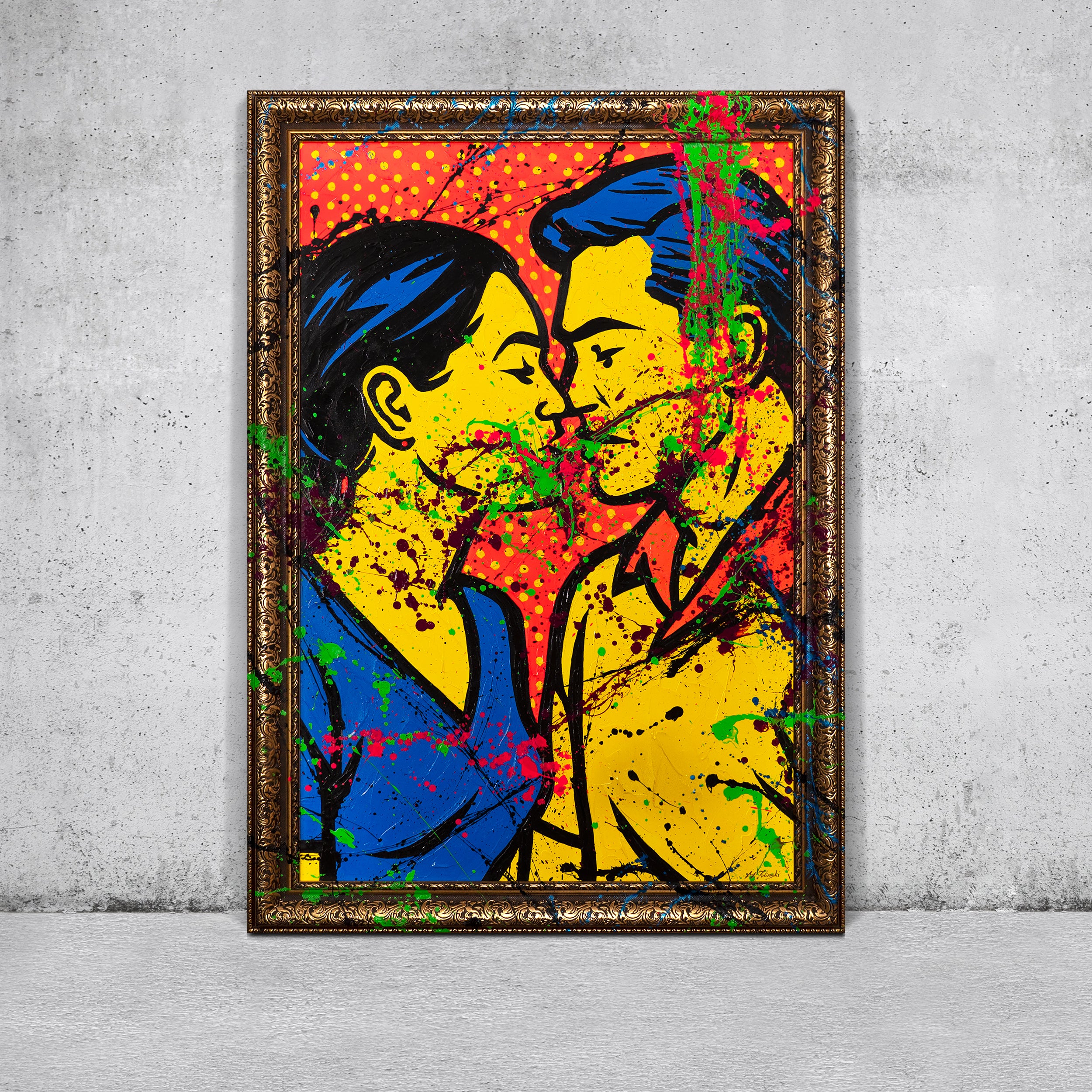 Hand-Painted Pop Art Painting – Modern Living Room Wall Art „Colorful Kiss“