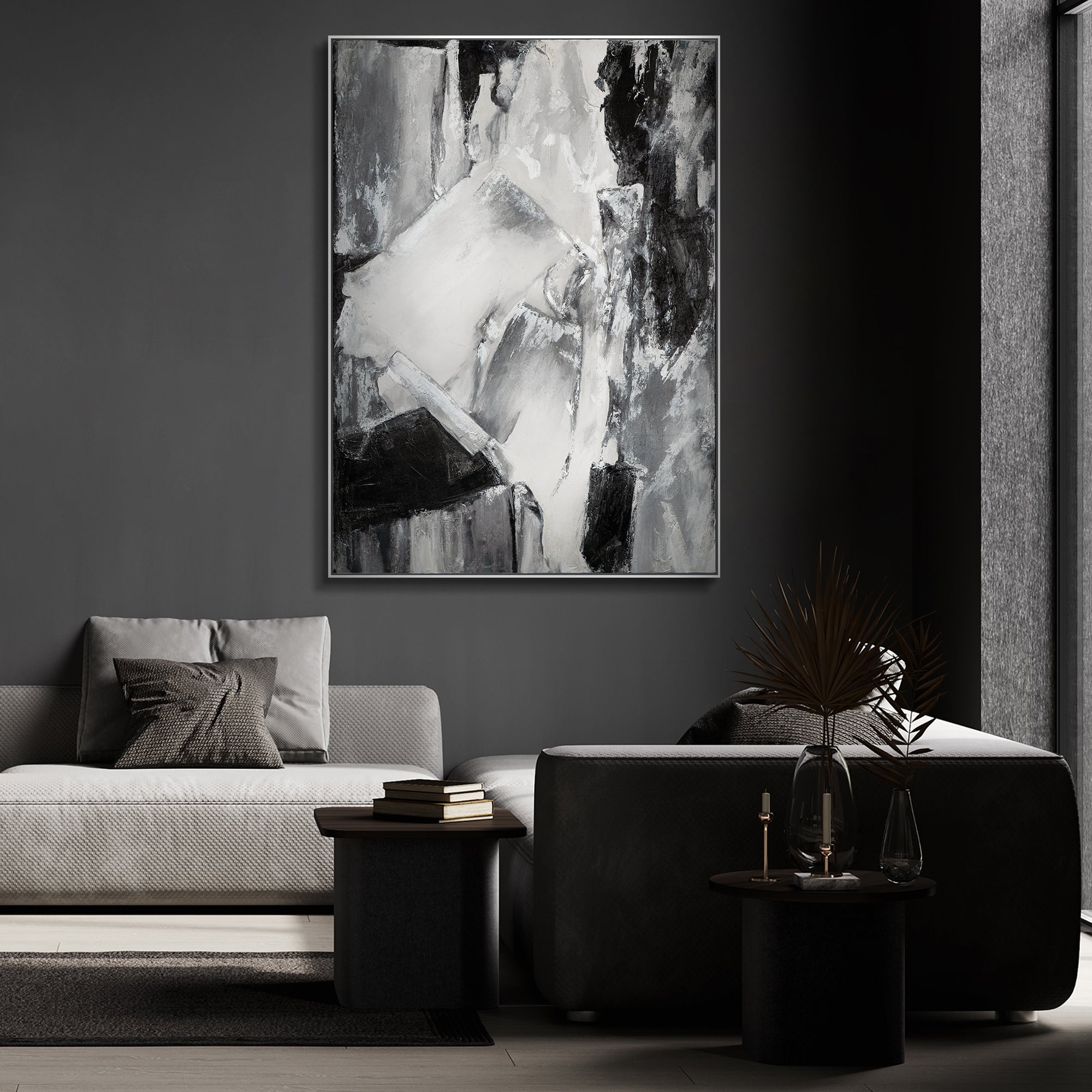 "Contrasting Reflections" Black White Art Hand-Painted Abstract Canvas Artwork with Frame