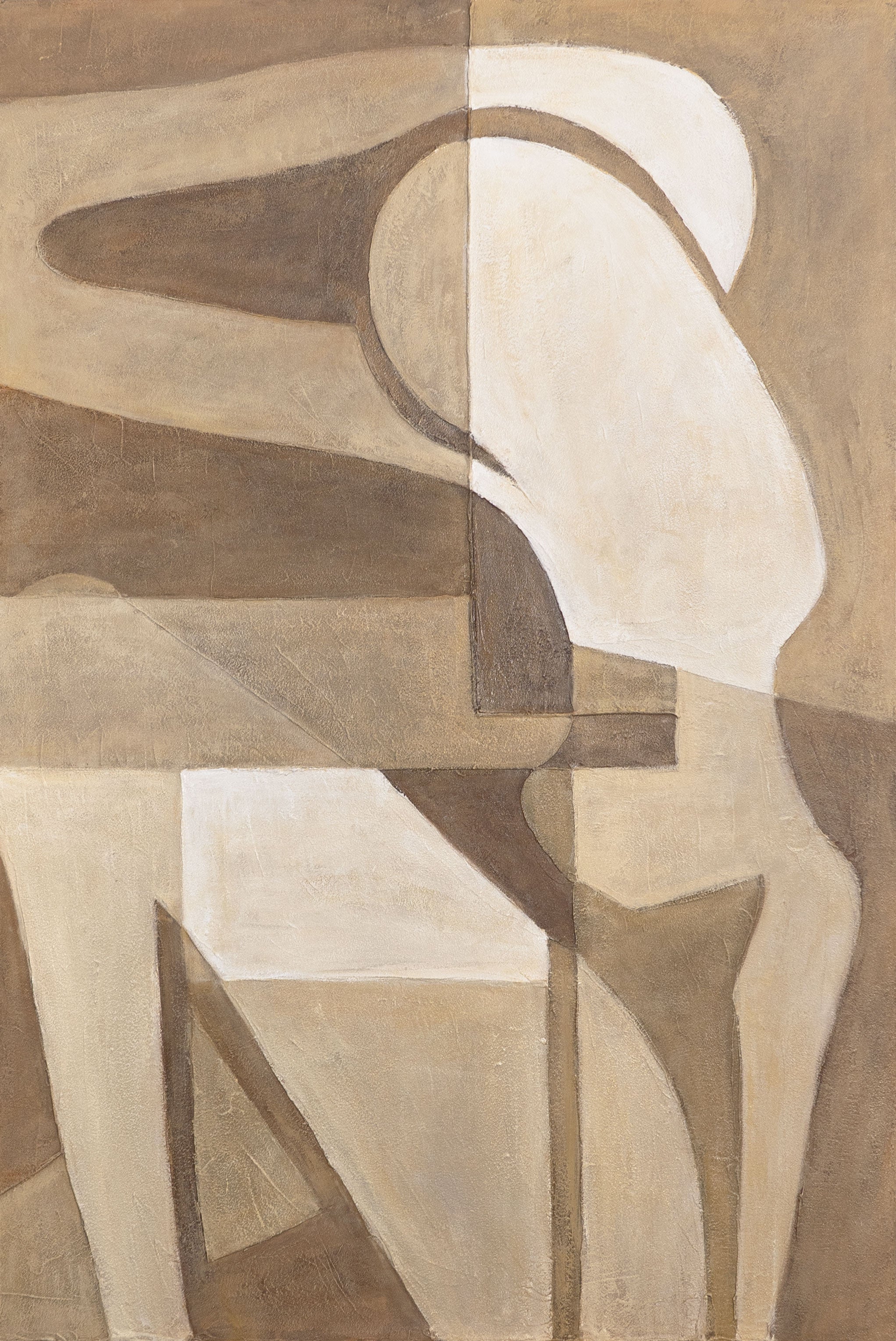 Abstrakte Zärtlichkeit“ vereint geometrische Formen und sanfte Bewegung zu einer poetischen Komposition. Die Figur erscheint reduziert, fast wie in Gedanken geformt – eingebettet in warme, harmonische Brauntöne und sanft strukturierte Oberflächen.