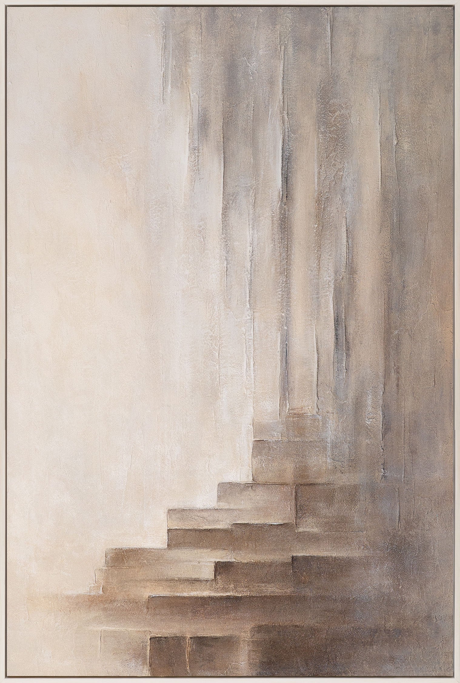 „Grenzen der Illusion“ ist ein ruhiges, abstraktes Acrylgemälde mit sanften Übergängen und einer klaren, architektonischen Struktur. Warme Beige- und Grautöne verbinden sich mit reduzierten Flächen zu einer harmonischen Komposition, die Tiefe und räumliche Wirkung erzeugt. Die strukturierte Oberfläche unterstreicht den handgemalten, hochwertigen Charakter des Werks.