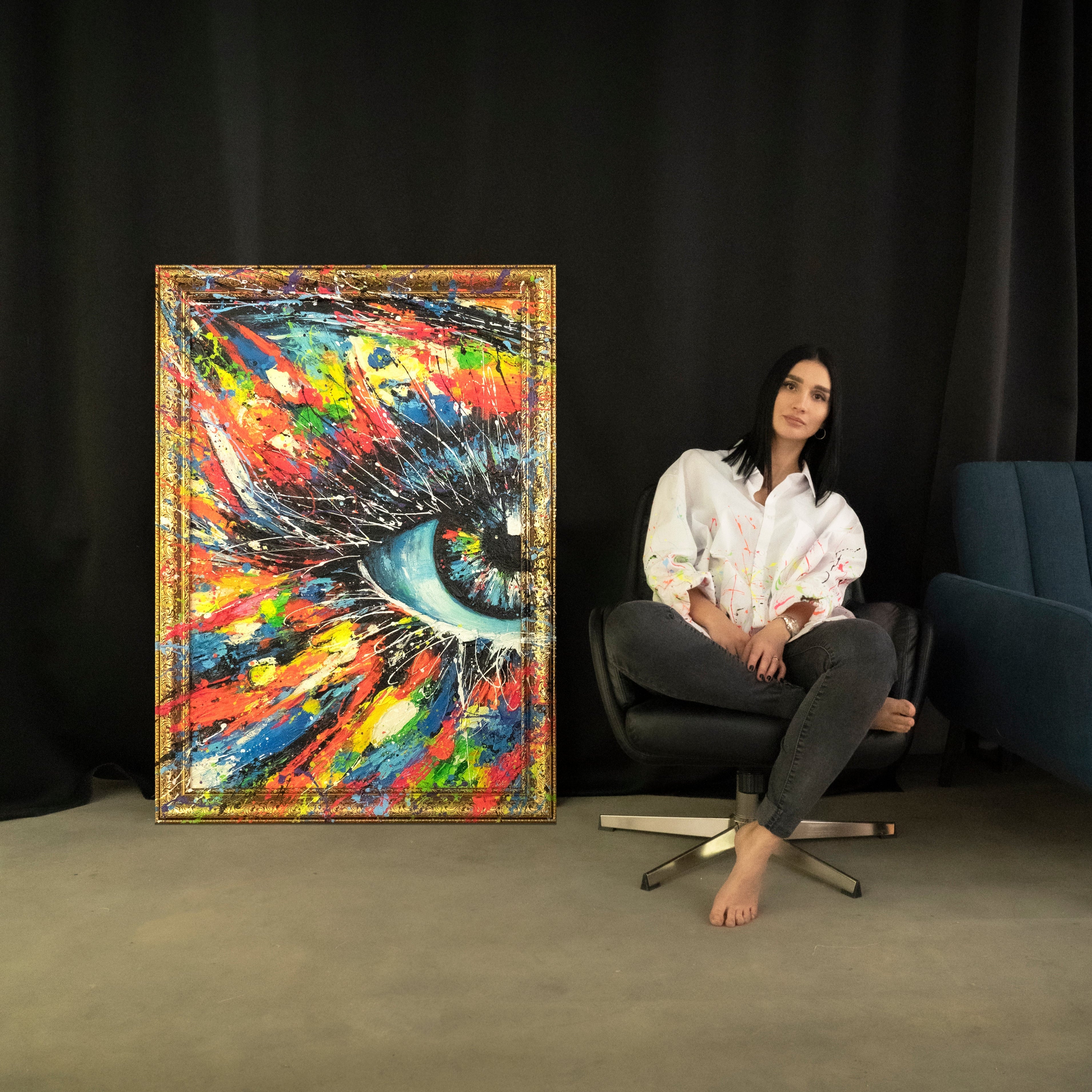 Abstract art painting with frame “The energy of the gaze”