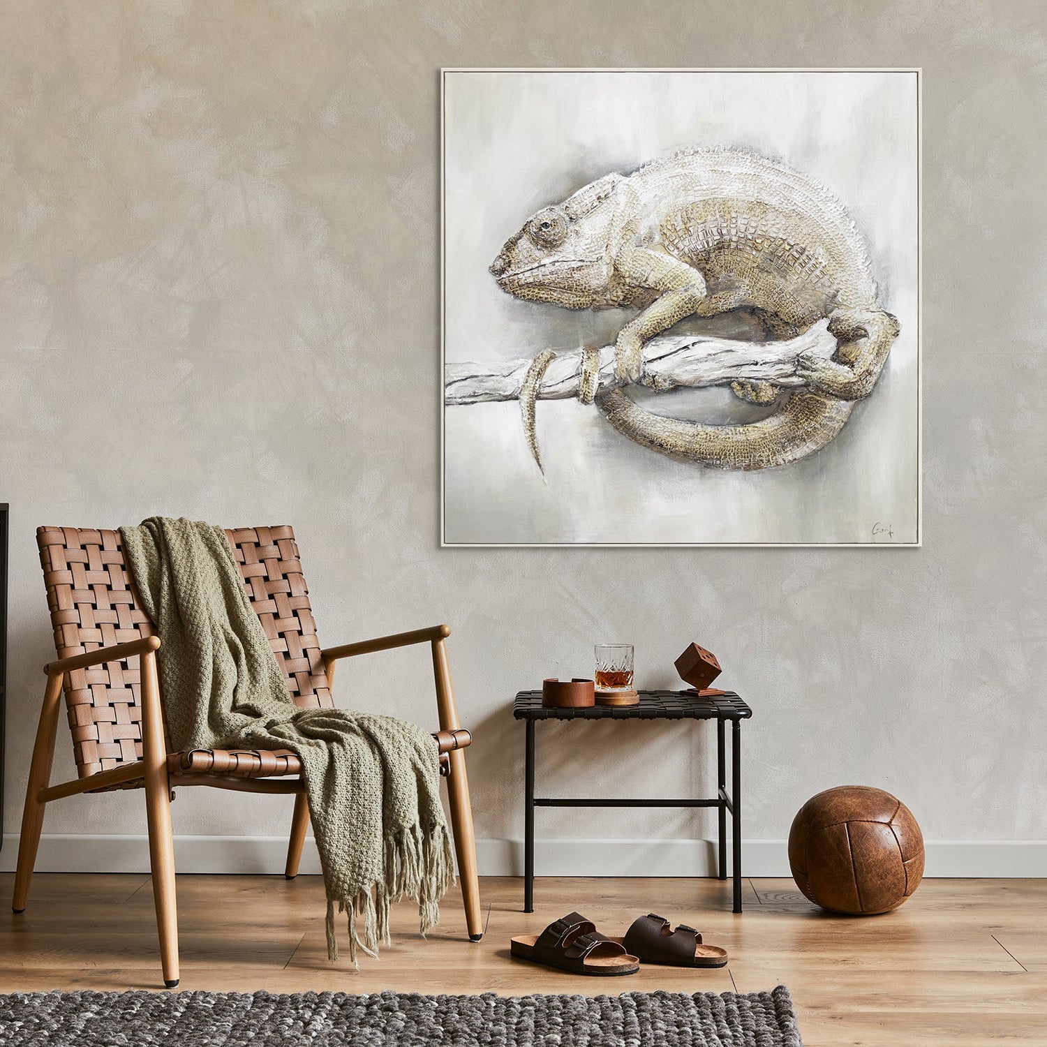 • Moderne Tierkunst Chamäleon Beige Grau im Wohnzimmer