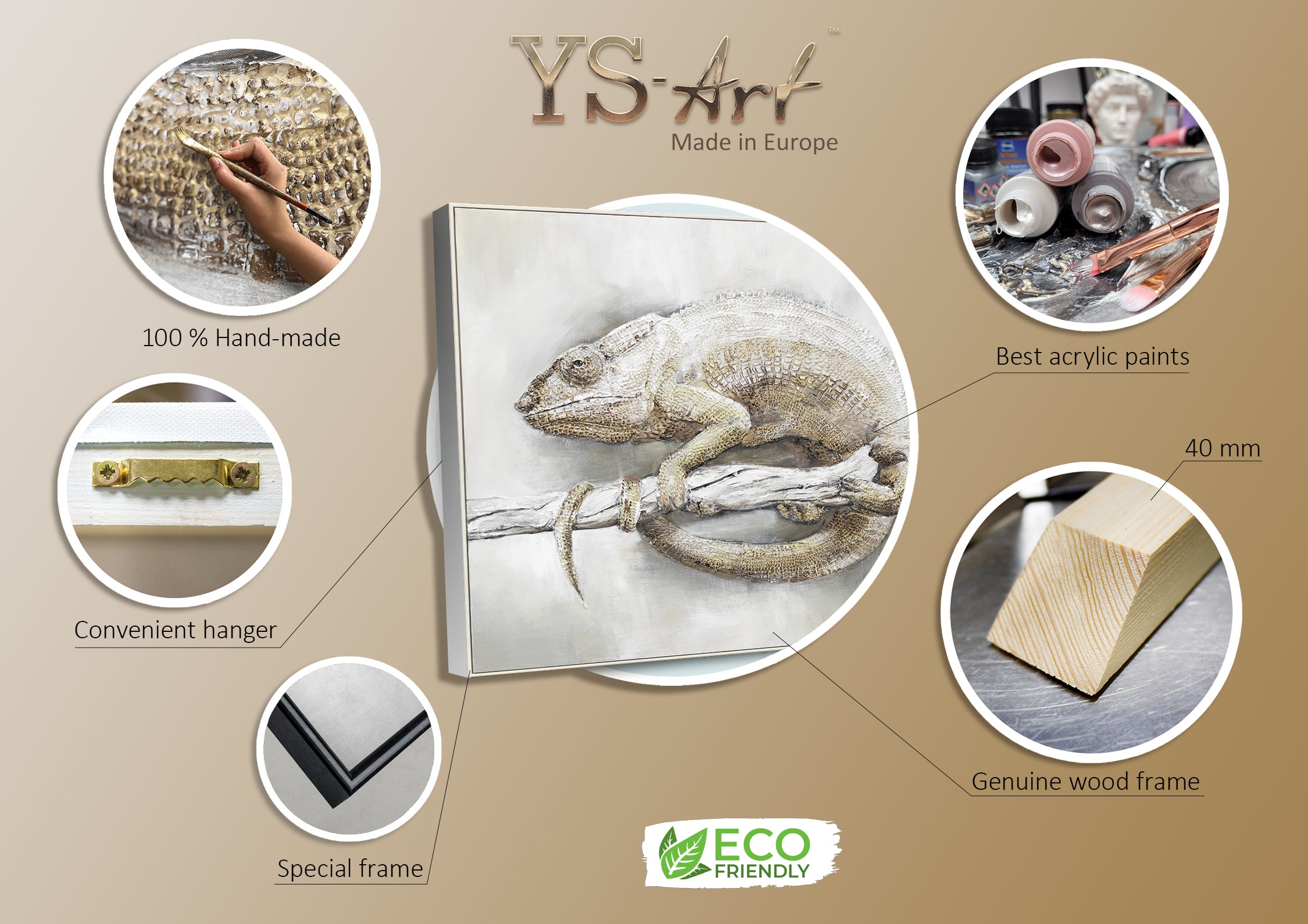 • Chamäleon Acrylbild auf Staffelei Beige Grau Wandkunst