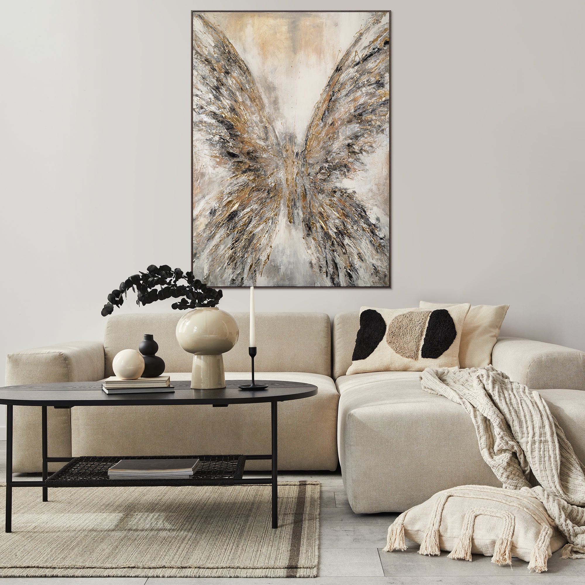 • Abstrakte Engelflügel Wandkunst handgemalt Gold Grau Deko