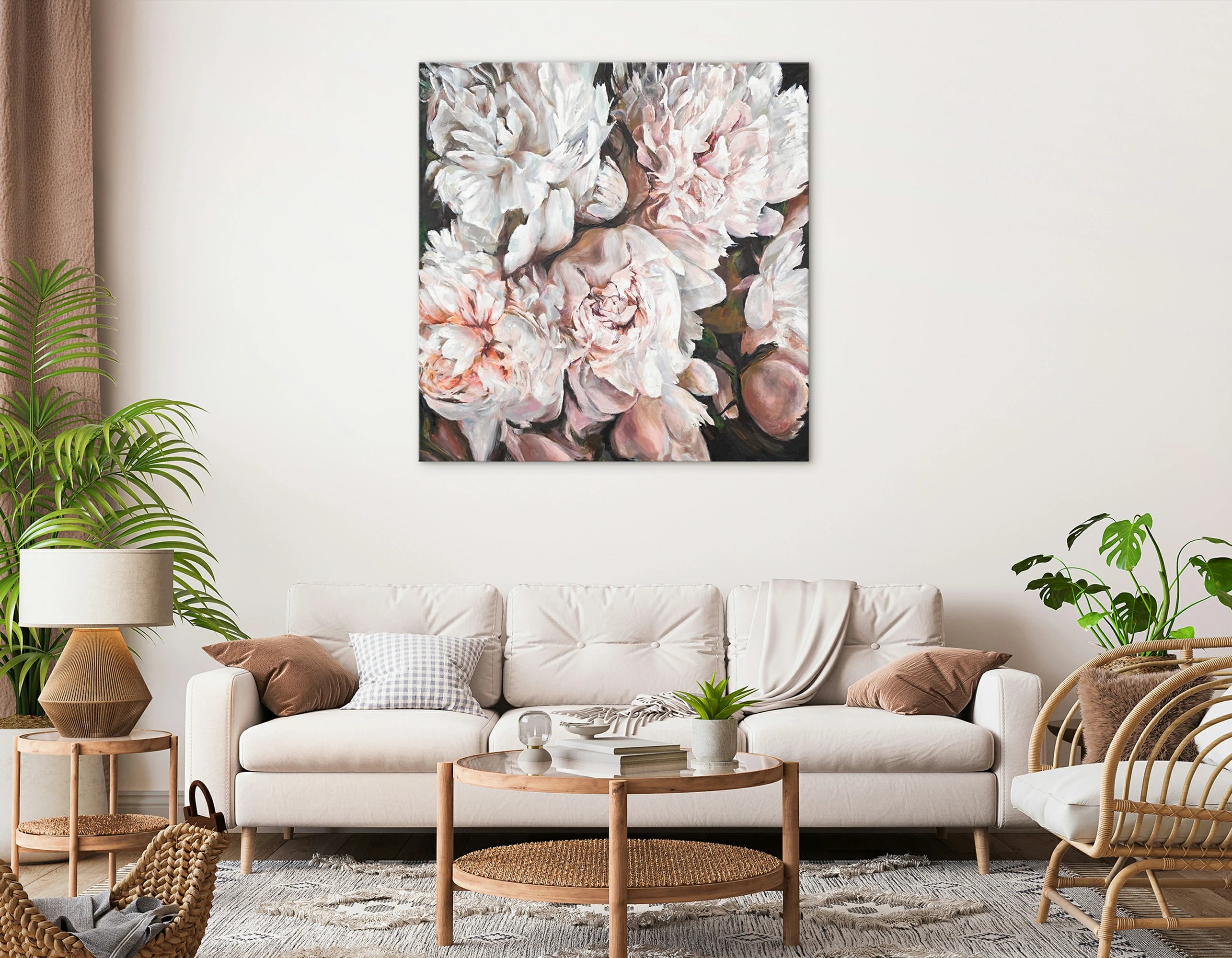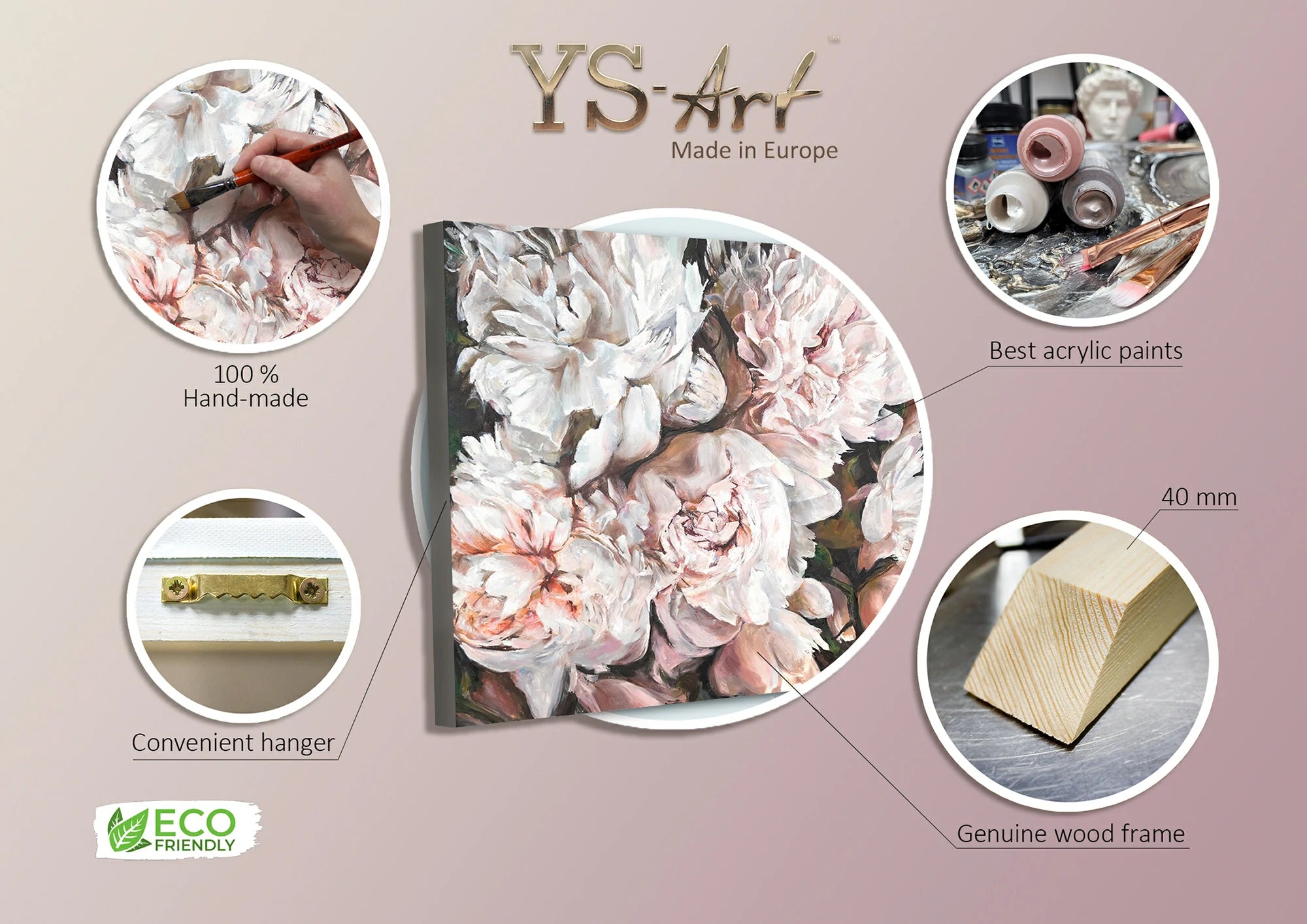 - Materials: acrylic, canvas, with frame made of natural wood.