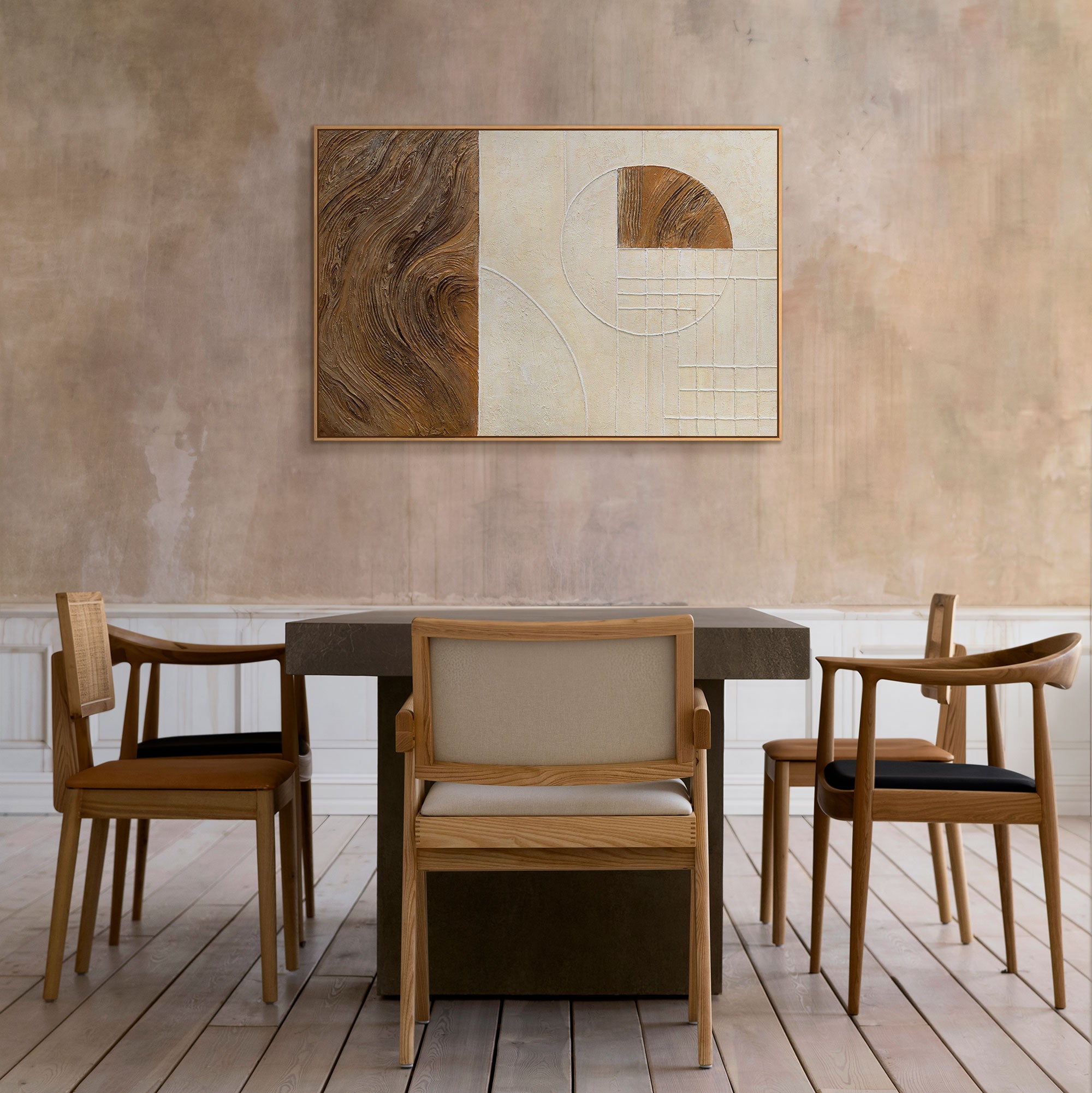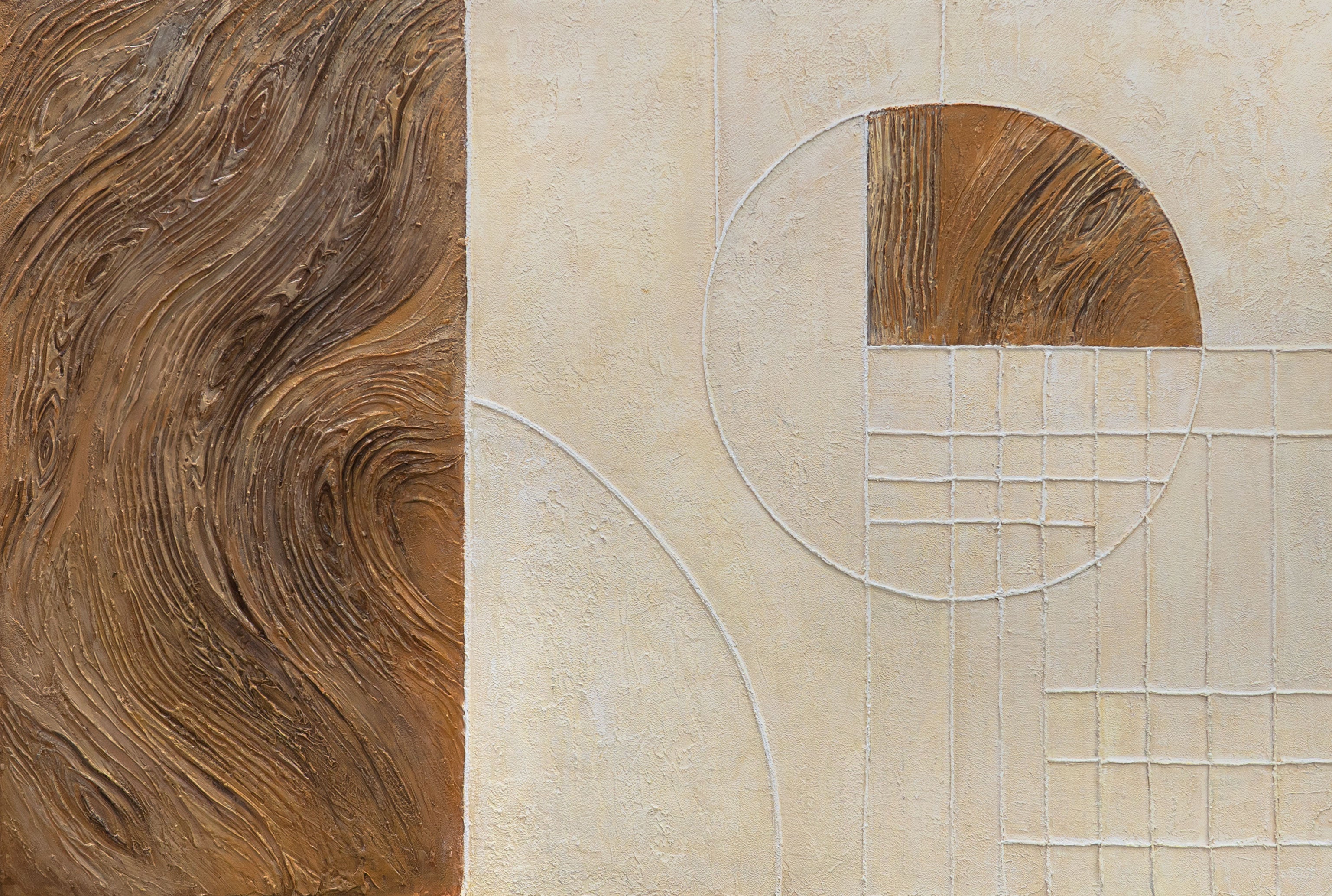 This textured geometric wall art is designed for interiors where material, rhythm and structure define the visual impact. Structured Flow combines curved and linear geometric elements with layered surface textures, creating a balanced abstract composition that works especially well as large horizontal wall art in living rooms or open-plan spaces.