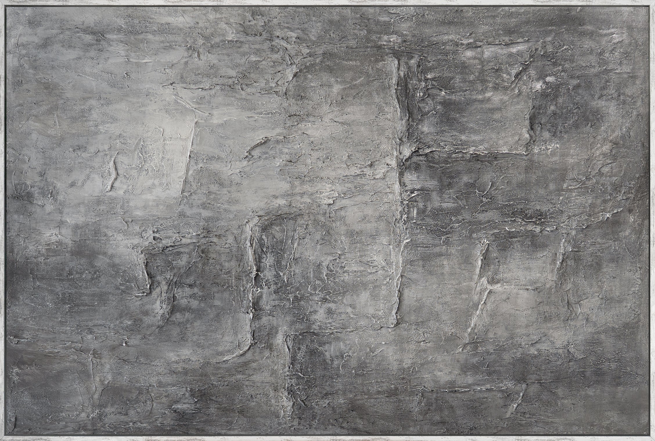This minimalist artwork explores layered concrete-inspired surfaces and subtle tonal transitions, creating visual depth through raw texture and restrained movement. The cool grey palette brings refined industrial character, making this piece ideal for living rooms, offices, loft interiors and modern architectural spaces seeking quiet strength and visual balance.