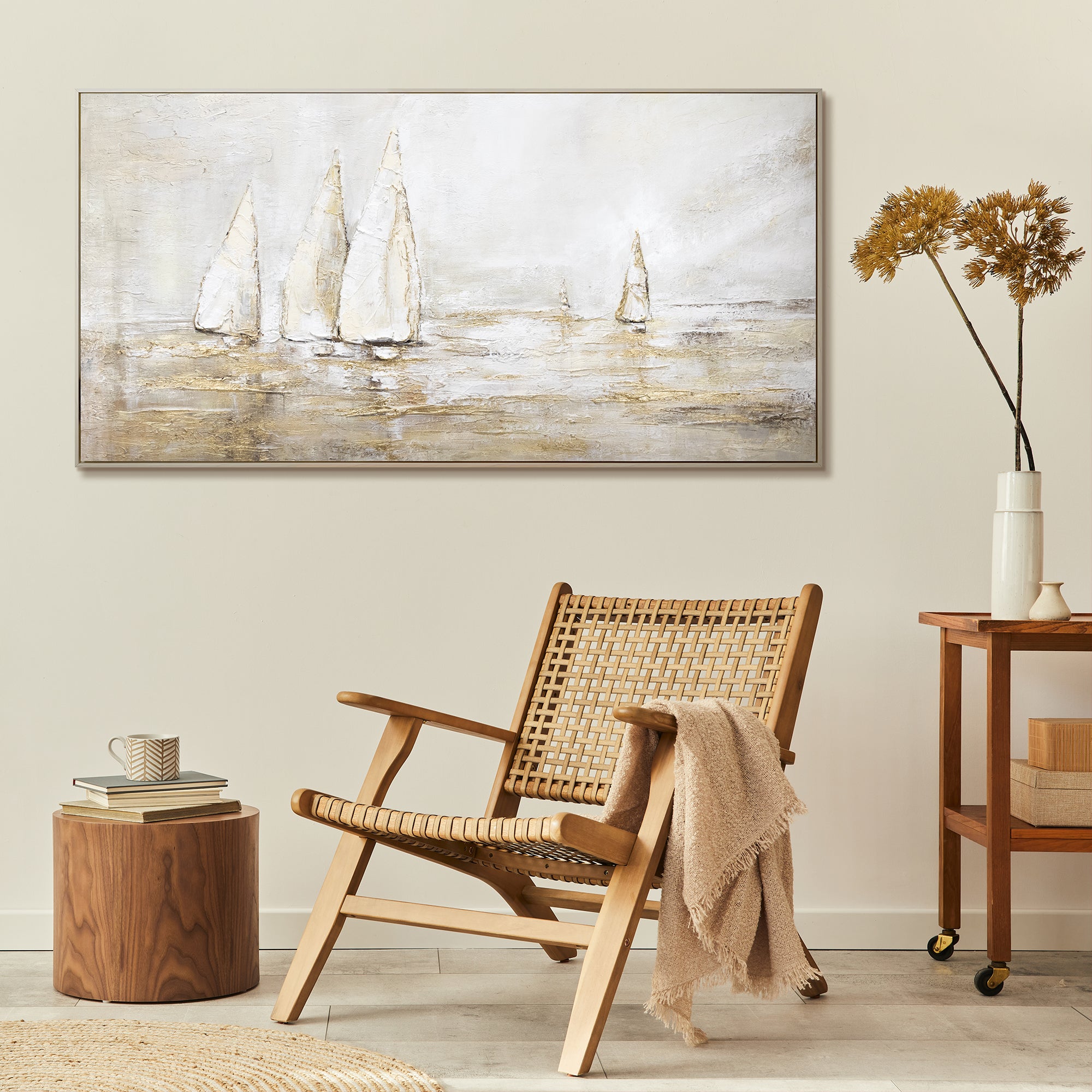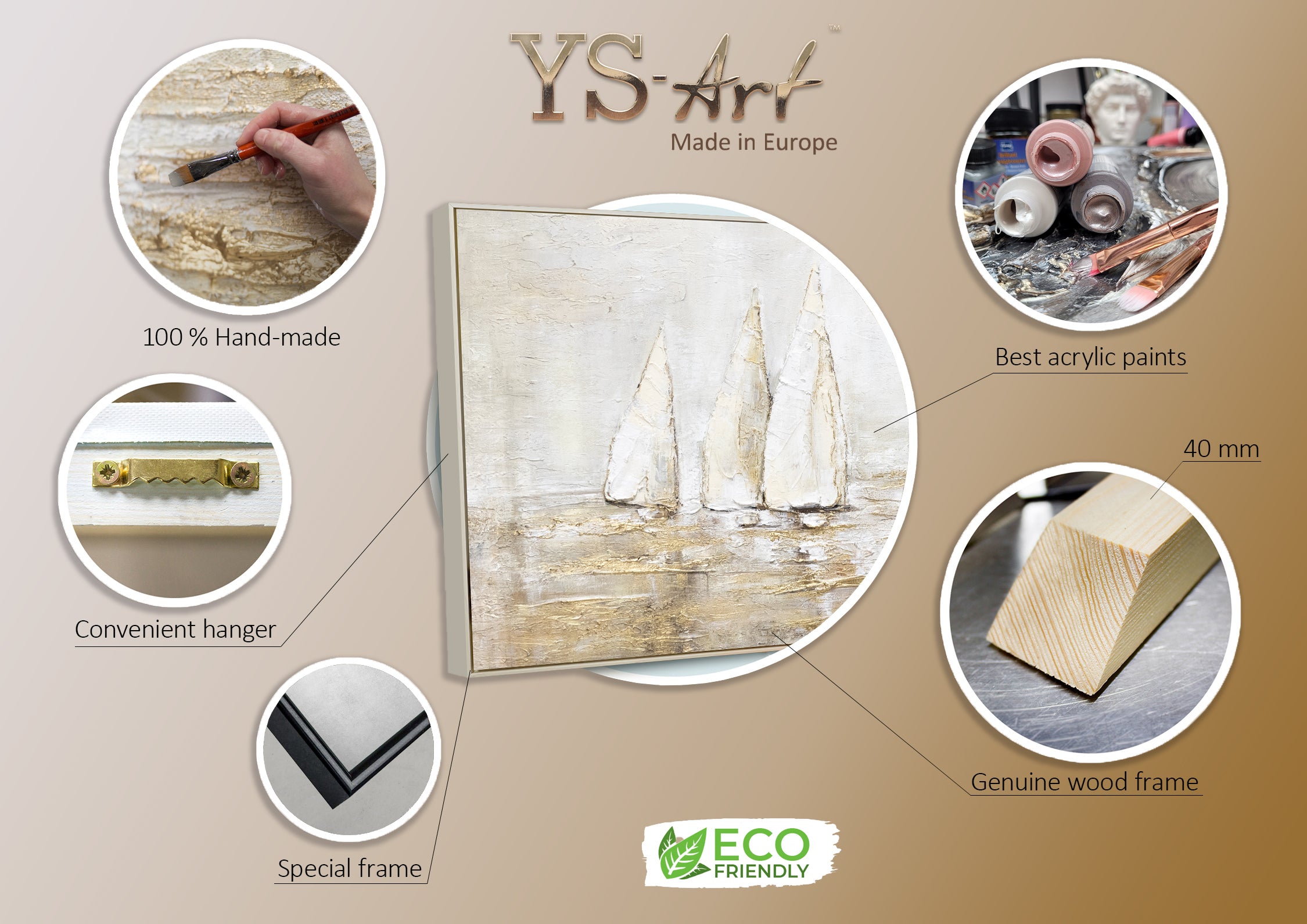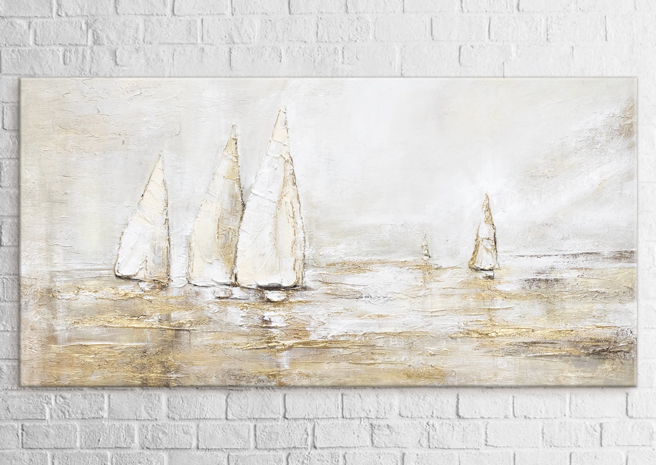 • Handgemaltes Wandbild Segelboote Goldstruktur